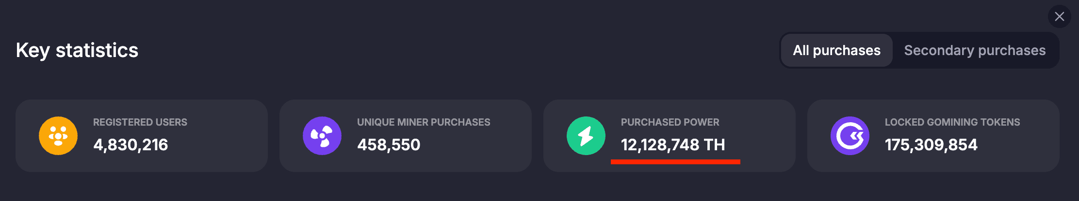 Gomining tokenized more than 1% of total Bitcoin hashrate (precisely - 1.138%), that is used by 4.8m millions users: