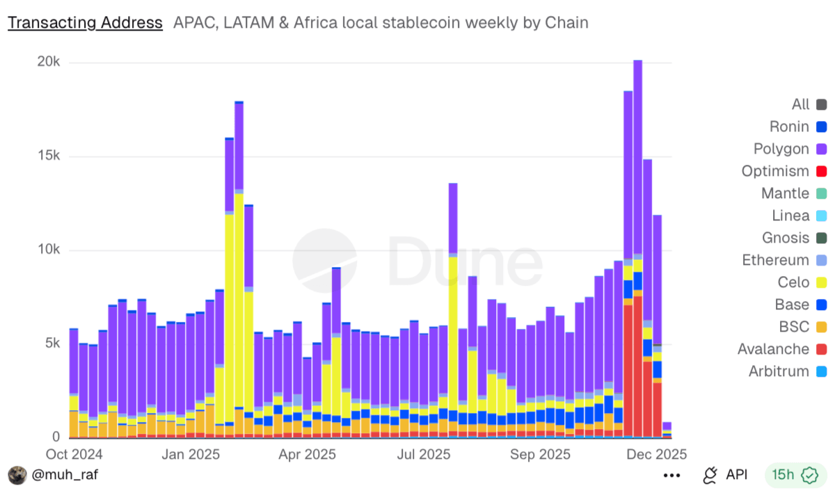 Polygon dominates in active user addresses transacting of local stablecoins in APAC, LATAM & Africa