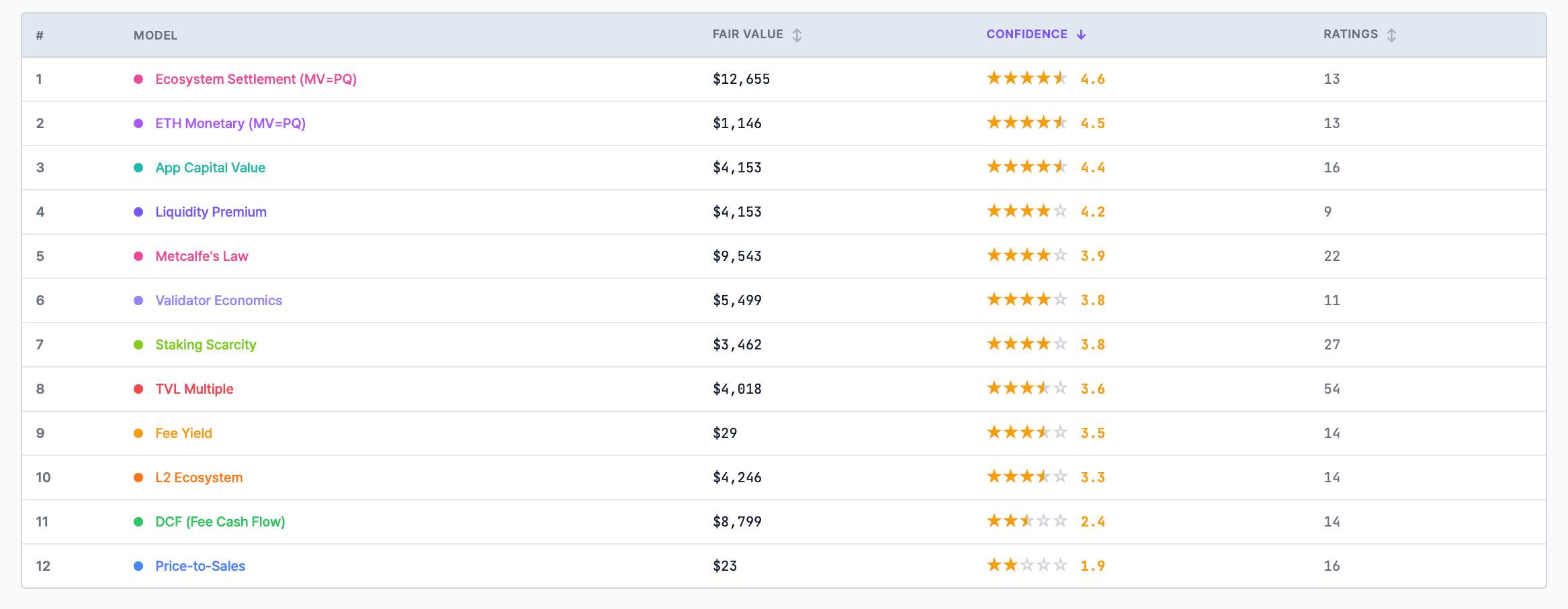 Ethval.com utilizes 12 approaches presented below, that are set in order by confidence by the community members: