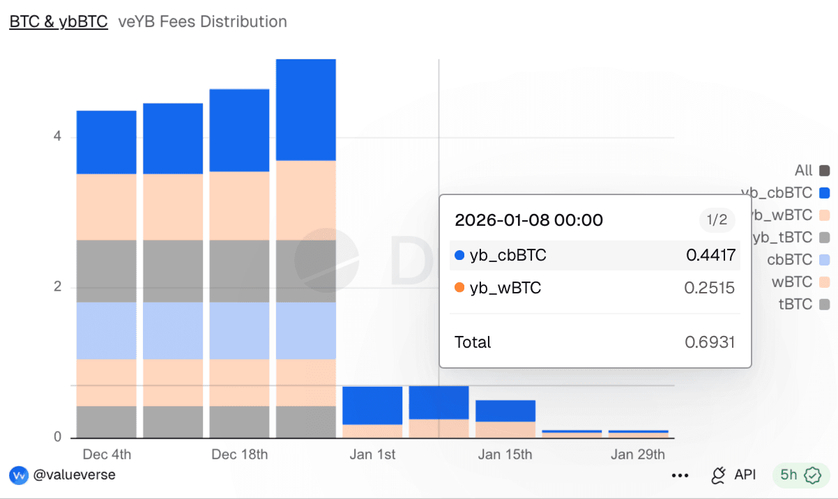 - There are two key factors for $YB: TVL expansion and market volatility. $YB directly profits from volatility. Higher trading volumes mean higher fees. Adding assets beyond $BTC, such as $WETH, diversifies veYB income. Recent $BTC movements demonstrated the protocol's ability to generate fees when volatility rises.