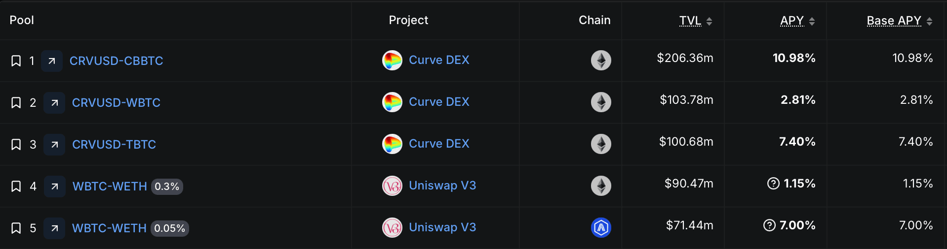 Yield Basis now accounts for the three largest Bitcoin pools in DeFi: