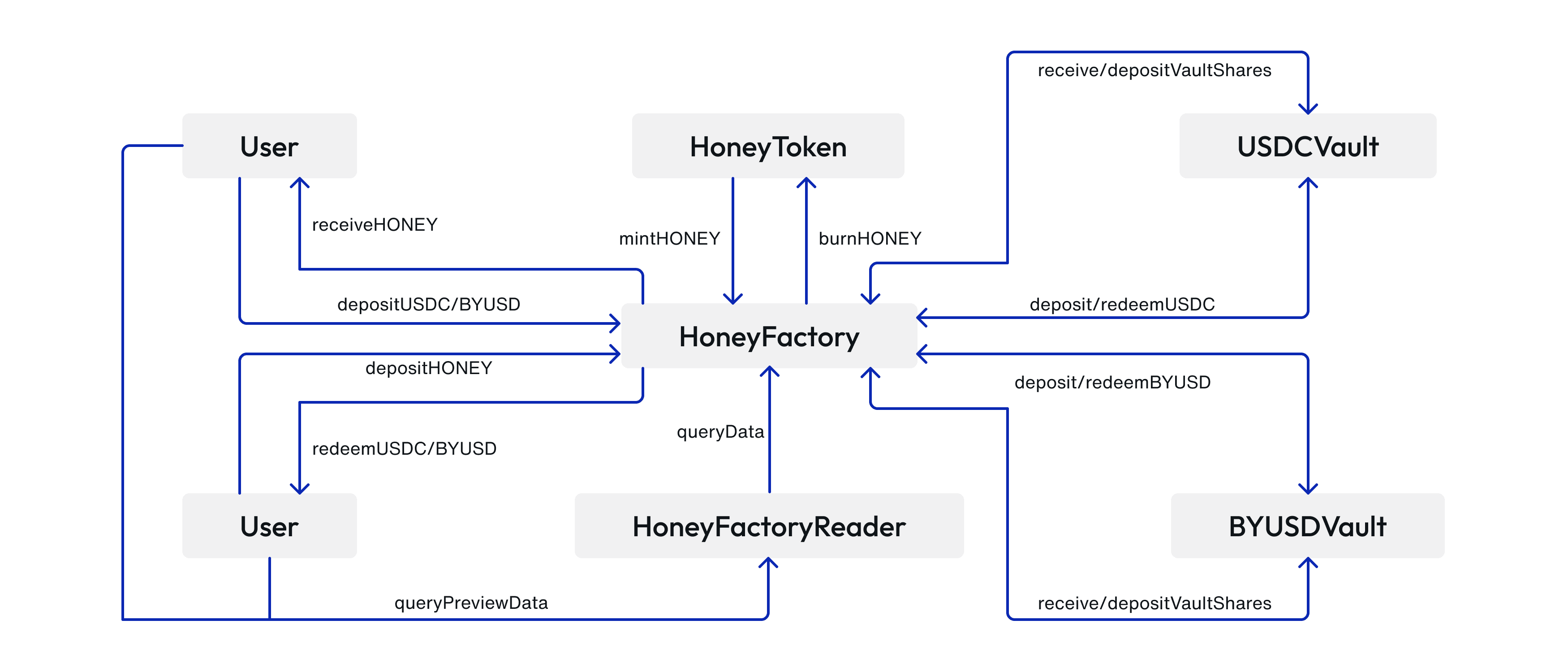 - HoneyFactory: Core logic for minting and redemption process.
